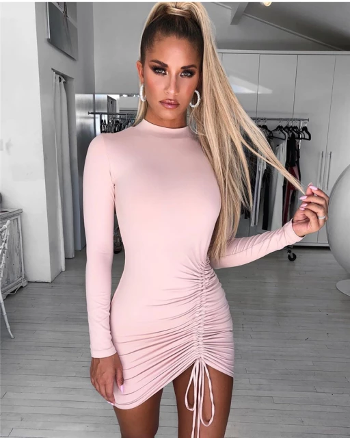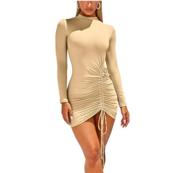 Vestido manga larga en piel de durazno embonada de doble tela. Corte ajustado, suave y cómodo. Talla única adaptable. Perfecto para destacar tu estilo en cualquier ocasión.